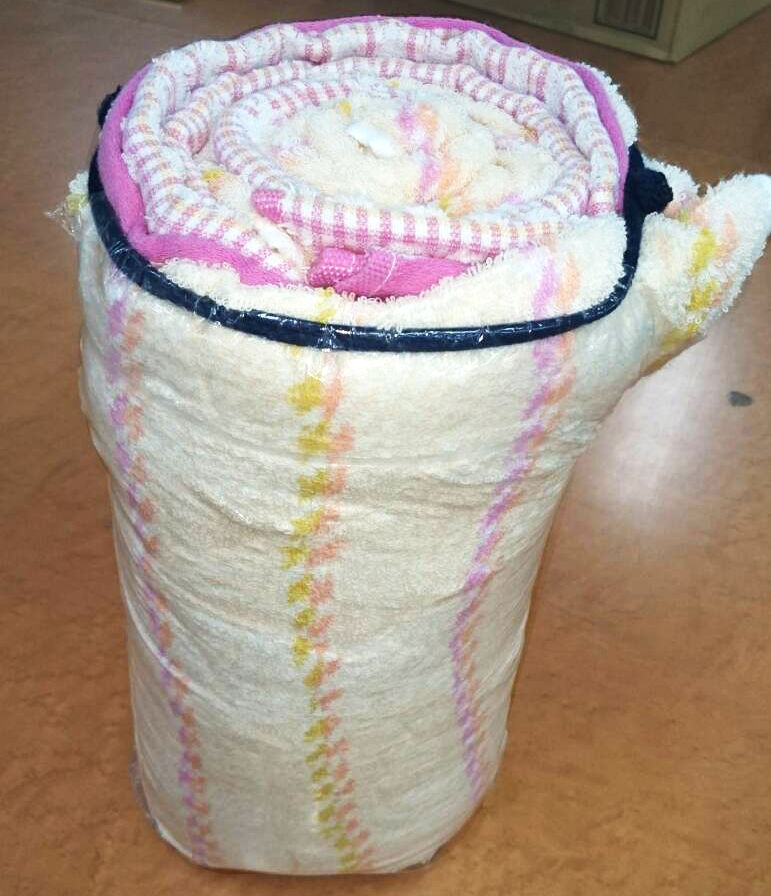 タオル詰め放題、お客さまのチャレンジ終了です。すごい!!!